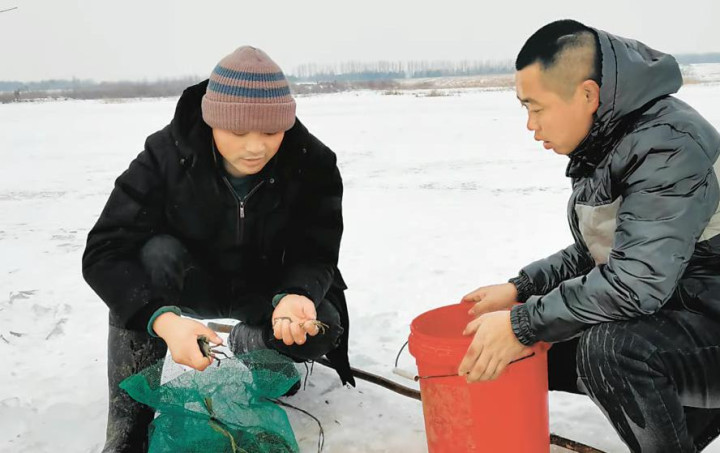 正月初六,立春日。通河县虾兵蟹将养殖家庭农场的冰湖里,寒地“蟹将军”提前感知到了春天的讯息。宋全凿开冰窟窿,查看越冬蟹苗的长势,一网提上来,几十只蟹子在冰面上四散奔逃。去年撒下的“扣蟹”,如今已长到鸡蛋黄大小。这下,宋全彻底放心了。过了“三九”严寒,这些异地引进的“蟹将军”算是安全越冬了。